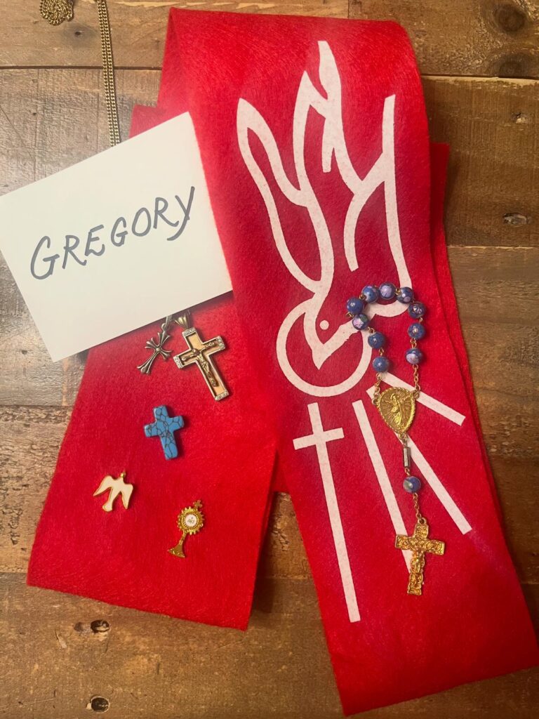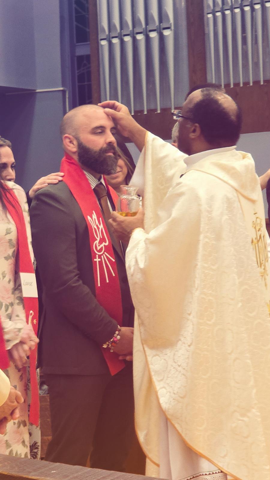 last night my husband and six other adults were confirmed fully roman catholic. four women were baptized and all seven adults received communion and confirmation. holy saturday mass began with a fire outside our parish. the entire congregation carried lit candles into our blacked-out church for a transformation from dark to light.